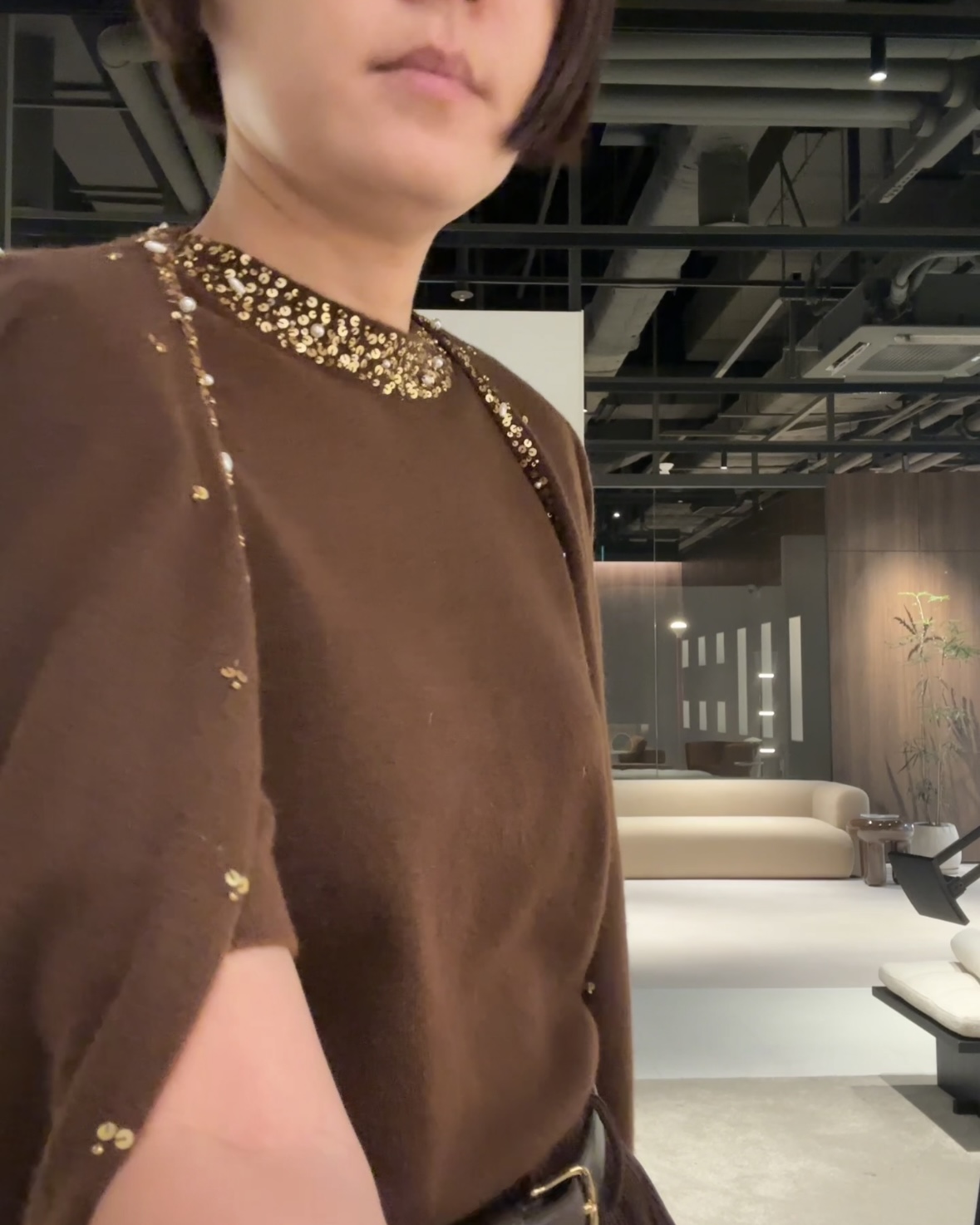 - 가디건- 브이넥 디자인, 정면 스팽글 디테일